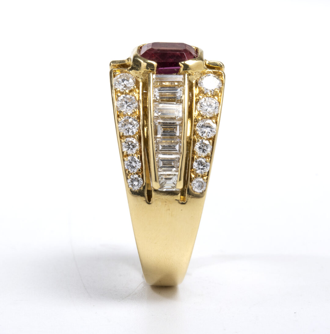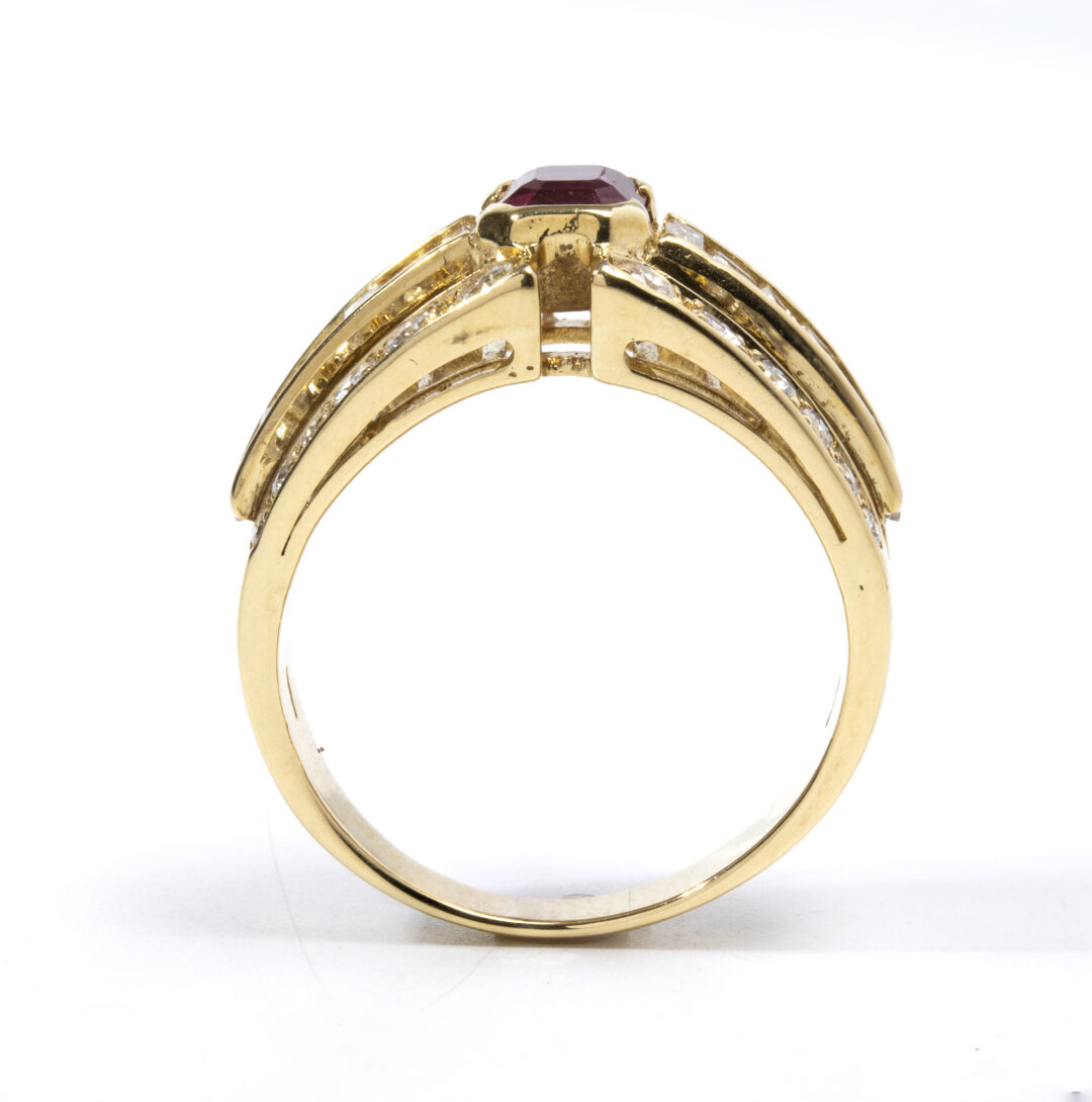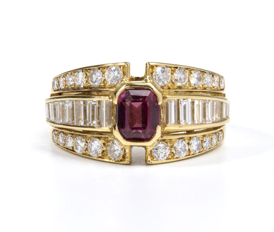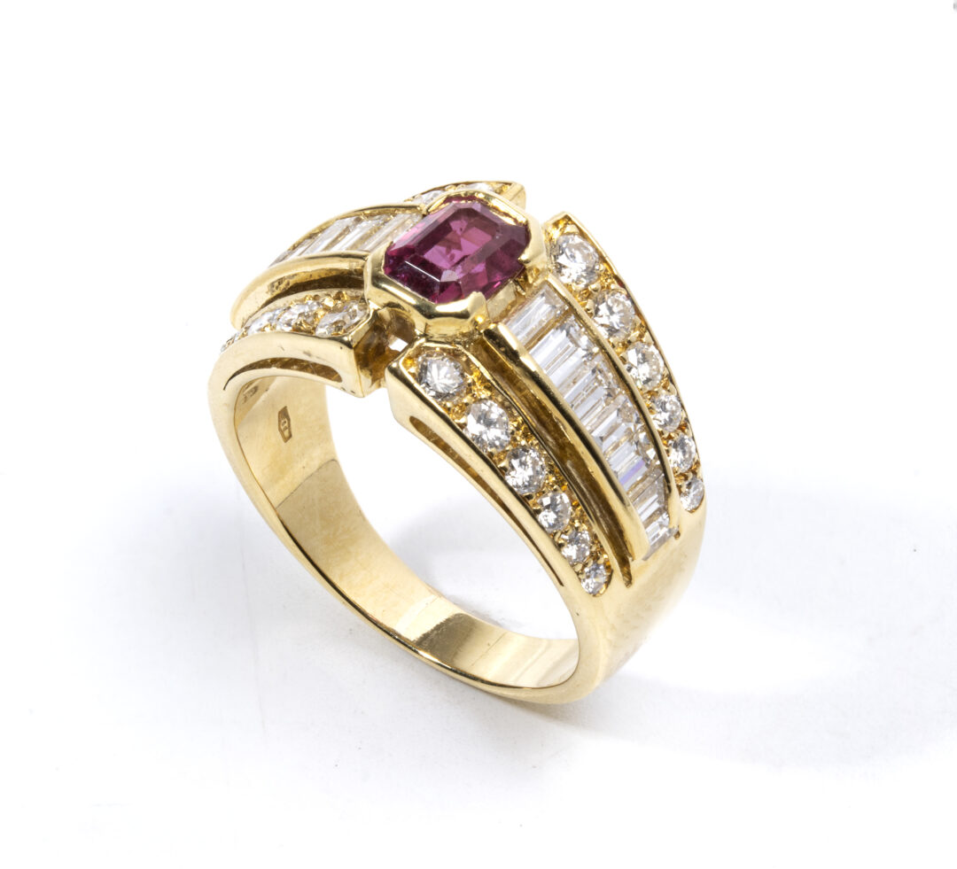 in oro bianco e giallo 18kt con rubino centrale e diamanti