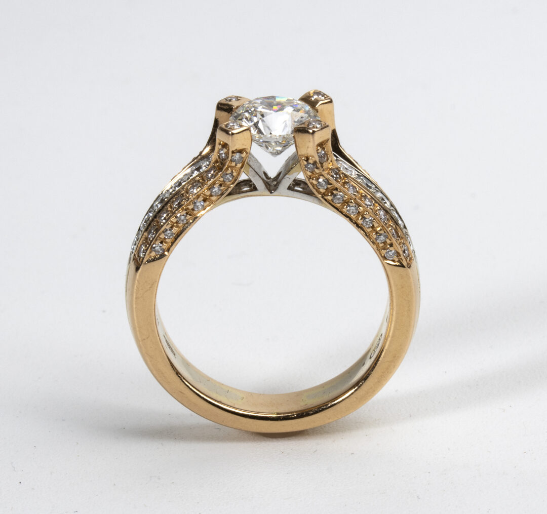 Diamanti: centrale 1ct G-H/VVS; Laterali 0,70ct G-H/VVS