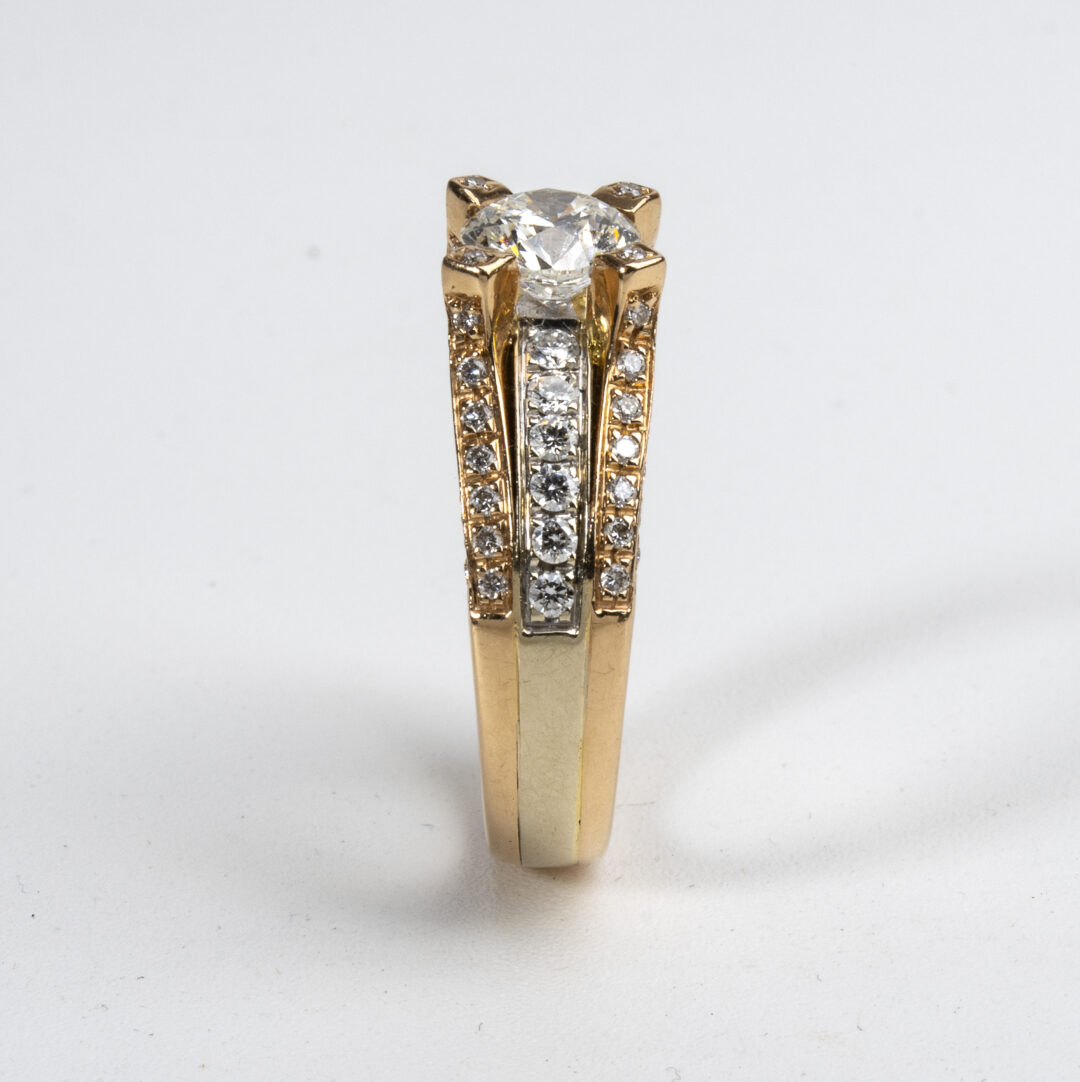 In oro giallo e bianco 18kt con diamante centrale e diamanti laterali